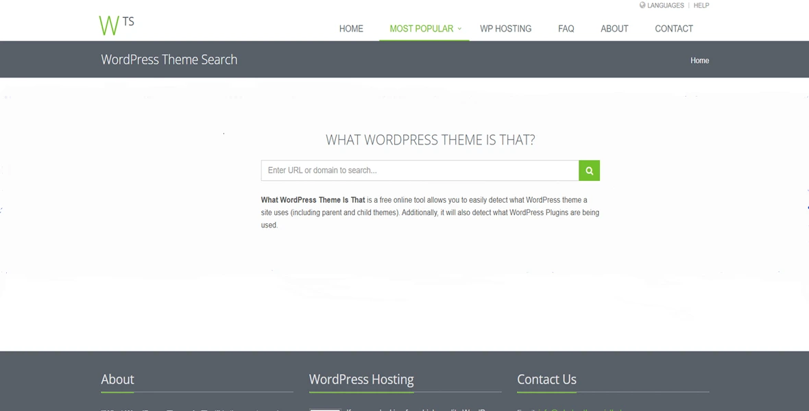 ابزار What WordPress Theme Is That یکی دیگر از ابزارهای ساده و در عین حال کاربردی برای تشخیص قالب وردپرس است. به کمک این ابزار نه تنها قالب را بلکه افزونههای نصب شده روی سایت موردنظرتان را نیز میتوانید تشخیص دهید. همانطور که در تصویر زیر مشاهده میکنید؛ کافیست آدرس سایت موردنظرتان را در نوار جستجو آن تایپ کنید و منتظر بمانید تا اطلاعات کامل سایت به شما نشان داده شود.